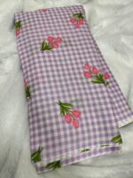 Mul Chanderi Digiral Print featuring delicate embroidery work. Lightweight, soft, and breathable with a subtle sheen, perfect for festive wear, casual elegance, and graceful ethnic outfits.